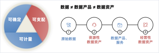 数据资产:定义上,数据资产是指特定主体合法拥有或者控制的,能进行货币计量的,且能带来经济利益或社会效益的数据资源[1]。我们理解,数据资产是企业所拥有的各种数据资源,是企业的核心资源之一。需要具备可确定性(明确数据所有权和使用权)、可支配性(数据能够自由使用和处理)和可计量性(数据的商业价值可以量化)的特点。