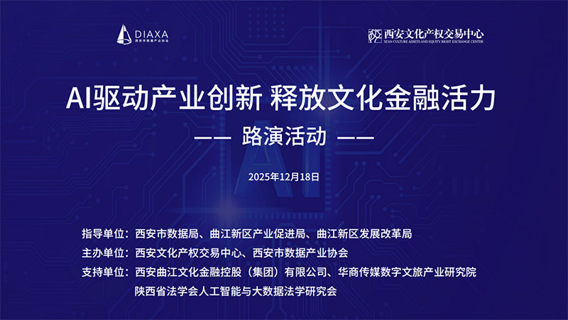 2025年12月18日,由西安市数据局指导、西安文化产权交易中心联合西安市数据产业协会举办的“AI驱动产业创新,释放文化金融活力”路演活动圆满结束。邀约机构从政策和AI产品两个纬度进行分享和路演,80余家文化、旅游和数字相关企业参加活动。