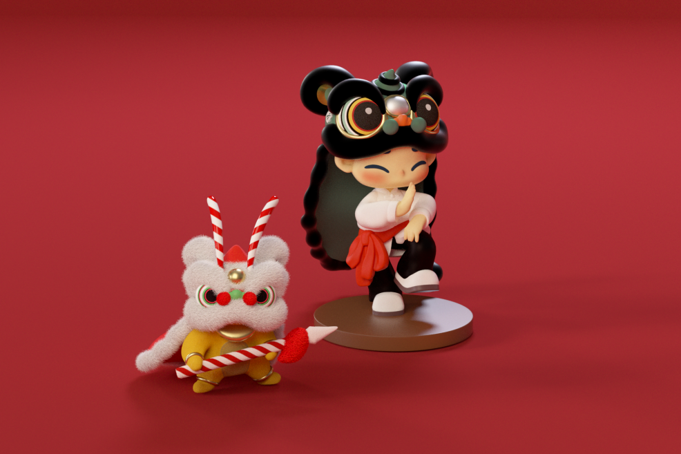 设计理念:广东卫视微短剧《以和为贵》,为醒狮文创 IP “咩啊” 的设计理念赋予了生动故事背景。为弘扬南派武术、拯救落寞武馆“醒武堂”、唤醒大众对非遗文化的记忆,醒狮兽“咩啊”幻化为人形并化名为“苏醒醒”,集结五名弟子登上武林大会,助力南派武术重振荣光。也正是基于这一故事设定,醒狮文创 IP“咩啊”天然拥有了“醒狮兽”与“人形”两种核心形态。
