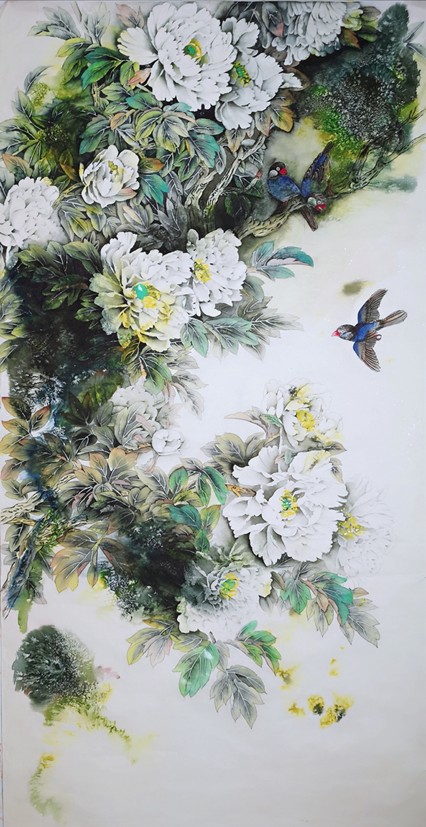 主攻花鸟新工笔,工写相融,善用丰富底色烘托主题,冷暖色调碰撞,营造朦胧氤氲的意境;代表作有《和谐家园》《冠上加冠》《一品清莲》等。作品多次入选全国及省市重要展览(如建党百年、西安市美协40周年展)。