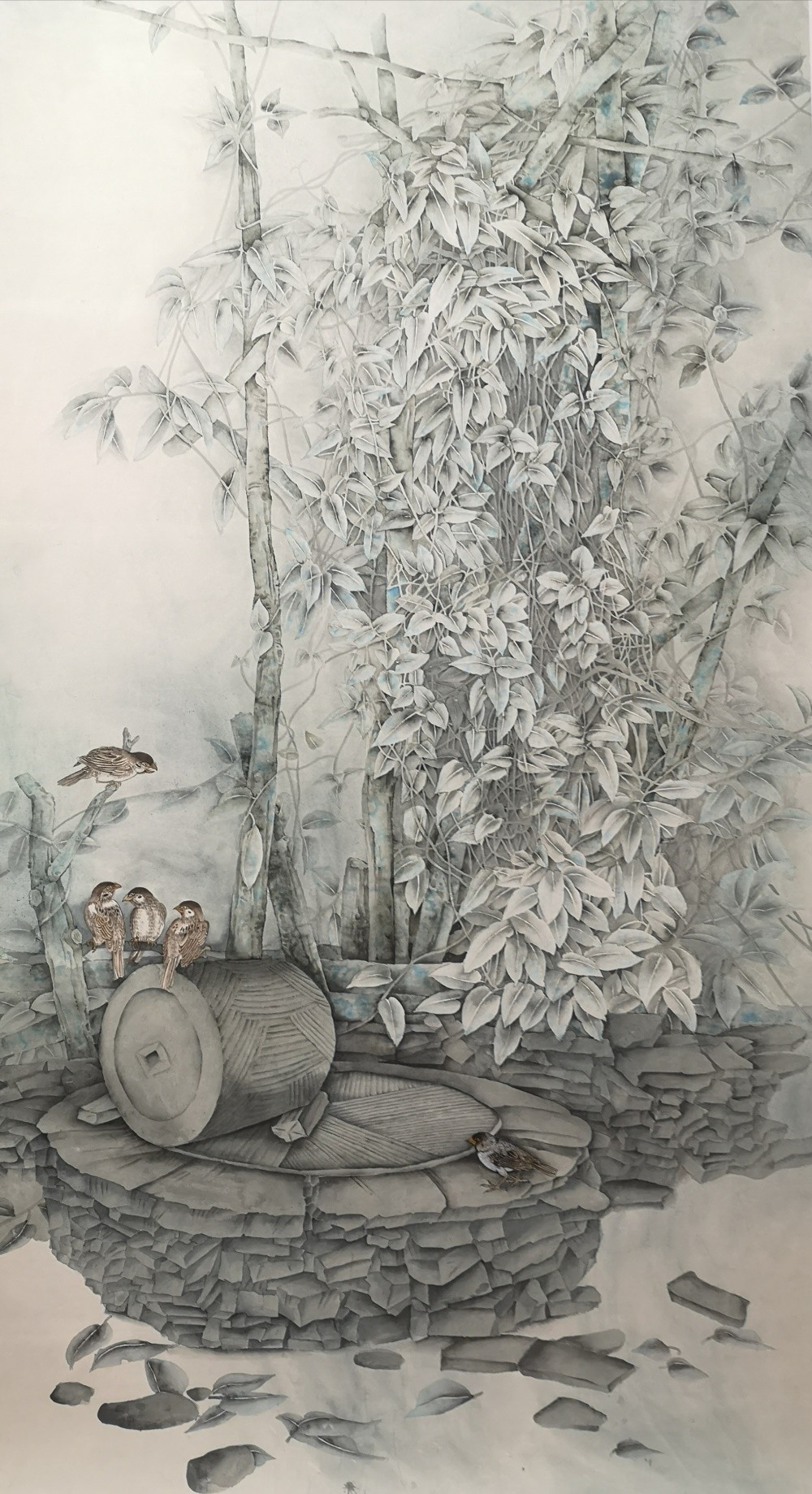 主攻花鸟新工笔,工写相融,善用丰富底色烘托主题,冷暖色调碰撞,营造朦胧氤氲的意境;代表作有《和谐家园》《冠上加冠》《一品清莲》等。作品多次入选全国及省市重要展览(如建党百年、西安市美协40周年展)。